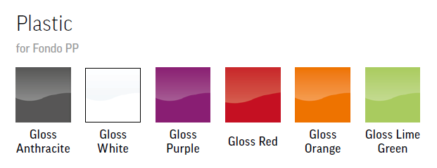 We offer these Fondo stools in a range of vibrant high gloss finishes; Anthracite, White, Purple, Red, Orange and Lime Green. The 4 leg frame is available in black (RAL 9005) or white aluminium (RAL9006) powder coat finishes or in chrome at a small extra cost.