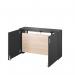 The framework is powder-coated with an impact resistant black finish, and the unit is available as standard in three finish options; white body with white desktop, black body with oak desktop and oak body with oak desktop. The door handle is aluminium. It comes complete with a convenient metal storage tray for a laptop etc.
