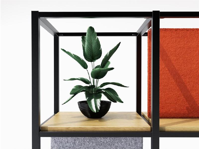 The shelving system can also be linked with some of our modular seating booths and pods, too.