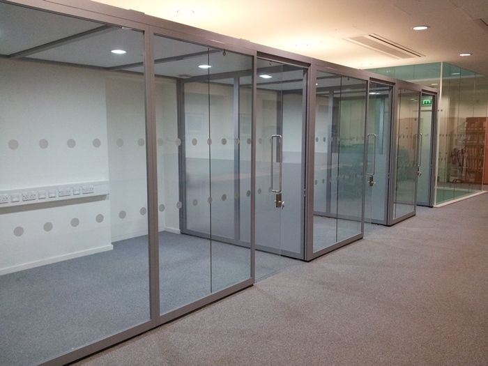 Aerofoil Design were contacted by the Facilities Manager when they wanted to create three new offices in an open plan area between their two glass atria. As it is possible that the area might have to revert to open plan use in the future, it was determined that a flexible solution should be sought.